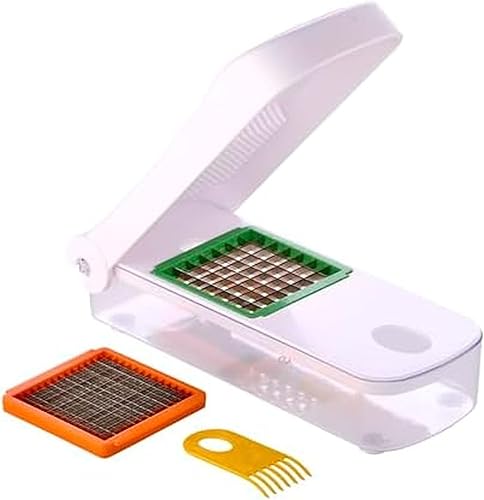 Corte uniforme: en comparación con el corte manual tradicional, la cuchilla de corte de verduras es más conveniente y más rápido corta verduras y frutas en tiras o cubos uniformes. Material de alta calidad: construido con marco de aluminio fundido a presión y cuchillas de acero inoxidable de alto carbono. Su marco es resistente al óxido, a la corrosión y al desgaste. No se dobla ni se rompe al cortar alimentos ricos en fibra como batatas, zanahorias, etc. Además, el paquete viene con 4 cuchillas adicionales de acero inoxidable reemplazables como regalo 【Fácil de operar】Fácil de usar. Simplemente alinea la cuchilla de repuesto con el puerto de instalación y aprieta los tornillos para usarla. Además, cada conjunto de cuchilla también proporciona 2 piezas adicionales de cuchillas para reemplazar las desgastadas a tiempo. 【Fácil de limpiar】Después de que la preparación de alimentos haya terminado, es fácil para ti quitar el conjunto de la cuchilla de tu picador comercial de verduras. Dado que todas sus partes son desmontables, los cuchillos se pueden limpiar a fondo con agua después de su uso. Amplia aplicación: compatible con la mayoría de picadoras de verduras comerciales. Se puede aplicar para cortar papas, zanahorias, pepinos, pimientos, cebollas, champiñones, manzanas y otras verduras.