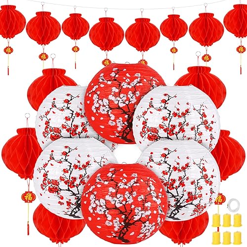 Fumete 20 linternas de papel chinas japonesas de 12 pulgadas y faroles rojos de 8 pulgadas, decoraciones de fiesta Hibachi en flor de cerezo japonés