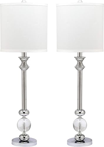 Listado UL. 23 pulgadas de alto en total. La base en la parte inferior es de 5 1/4 pulgadas de ancho. La pantalla mide 10 pulgadas en la parte superior x 12 pulgadas en la parte inferior x 9 pulgadas de alto. Utiliza una bombilla de base estándar media de 100 W de máximo y una bombilla nocturna de 7 W (bombillas no incluidas). Interruptor de enchufe de 4 vías: luz superior encendida, luz nocturna encendida, ambos encendidos, ambos apagados. Un diseño de lámpara elegante y moderno de la marca 360 Lighting Cuerpo de lámpara de cristal blanco con luz nocturna en el interior. Acentos de metal con acabado de níquel cepillado. Pantalla de tambor blanca con acabado de níquel cepillado. Cable de 8 pies de largo.