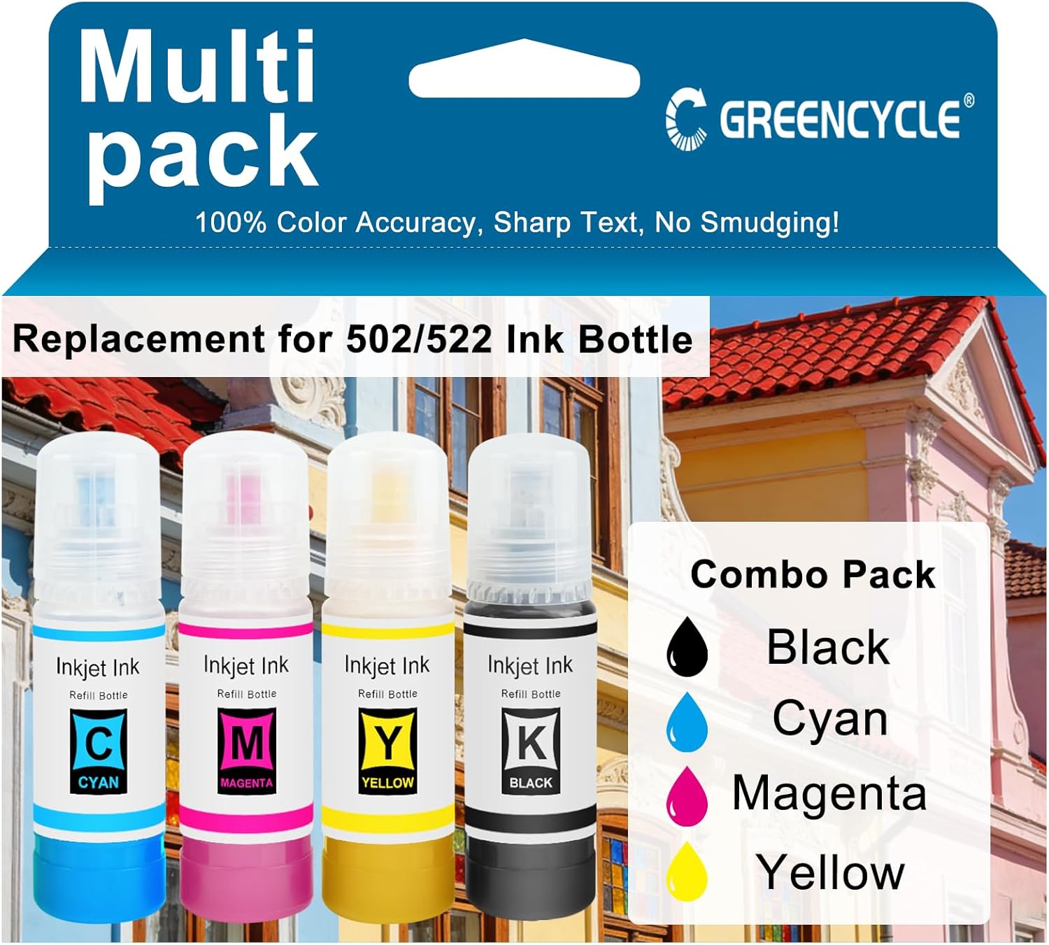 greencycle Botella de tinta de repuesto 522 para tinta compatible con T522, funciona con impresoras ET-2803 ET-2800 ET-2720 ET-4800 ET-4700,