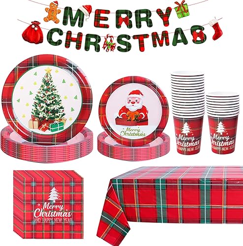 Juego de platos de Navidad: esta vajilla de Navidad se puede utilizar para 24 personas, es una opción muy adecuada para cenas de Navidad, incluyendo 24 platos de 9 pulgadas y 24 platos de 7 pulgadas, 24 servilletas, 24 tazas, 1 mantel, 1 bandera de "Feliz Navidad" Decoración de fiesta de Navidad: nuestros platos de vajilla de Navidad a cuadros rojos y negros están llenos de elementos navideños, prepara estos platos de cena en la víspera de Navidad, creando un ambiente cálido de Navidad, hace que la Navidad sea más conmemorativa Alta calidad: Hecho de materiales de troncos forestales seguros e inofensivos, ecológicos y degradados, los platos de cena y postre pueden ser de apoyo para alimentos sin derramar, las servilletas son suaves y absorben el agua fácilmente Ahorra tiempo: nuestros platos de papel de Navidad son para liberar tus manos, puedes tirarlos directamente después de usar el plato desechable, sin limpiar los platos, te permiten pasar una Navidad perfecta con tu familia Ocasión de uso: el plato de papel y las servilletas están diseñados con cuadros clásicos de búfalo y elementos de Navidad, apto para decoración de Navidad, recuerdo de fiesta, fiesta de cuadros de búfalo, festivales y suministros de fiesta de vacaciones