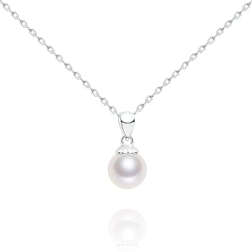 AAAA - Collar redondo de perlas de plata de ley cultivadas de agua dulce para mujer, de 16 a 18 pulgadas