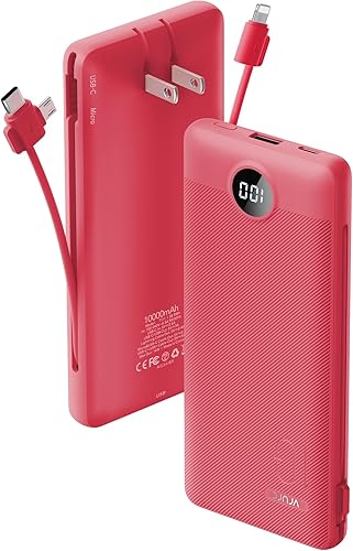 Cargador portátil con cables integrados y enchufe de pared AC, VRURC Power Bank USB C de 10000mAh, batería portátil para viajes, cargador compacto y