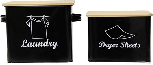 Xbopetda introduces a range of galvanised metal storage boxes, each clearly labelled and with a specific purpose, making organizing your everyday household items more manageable. Dimension: Laundry Bin:20*17.5*16.5cm / Dryer Sheet Bin: 18*15*13 Decor For Your Laundry Room - Make doing the laundry as much of a pleasant experience as possible by dressing up the laundry room. Actually use it for laundry powder or use it to store other miscellaneous items. Place all of the necessary laundry supplies in decorative containers and arrange neatly on shelves. - This modern design is a perfect addition to your utility room. Keep washing powder or capsules secure in this attractive box. The wooden lid will keep your washing powder nice and dry but not airtight. The finish is smooth and glossy and easily wiped down. So,to recap: Perfect sizes. Wooden fitting lids. The cutest little nifty scoop. Durable carbon steel construction. And, they simply look beautiful!