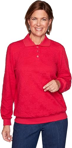 Nunca sacrifiques el estilo cuando mantengas las cosas casuales en nuestra camiseta de manga larga con patrón de jacquard. Este estilo clásico para mujer cuenta con un suave ribete de punto acanalado en el cuello, puños y dobladillo.