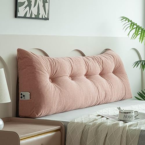 Variedad de colores y tamaños: nuestra almohada triangular de cuña más vendida está disponible en una gama de colores y tamaños para adaptarse a sus necesidades y preferencias. Además, viene con bolsillos laterales para un fácil almacenamiento de objetos pequeños como controles remotos, teléfonos y botones, y está diseñado para un fácil desmontaje y lavado a máquina. DISEÑO ERGONÓMICO PARA UN SOPORTE ÓPTIMO: Nuestra almohada de apoyo de posicionamiento de la espalda está diseñada para seguir la curvatura natural de su espalda, proporcionando un apoyo óptimo para la parte superior de su cuerpo. Su forma triangular soporta y eleva tu espalda, cuello y cintura, por lo que es perfecto para usar como cabecera en tu cama, en tu caravana/remolque, como una almohada acolchada para niños, o incluso como una acogedora almohada para dormir. Adecuado para múltiples usos: nuestra almohada triangular para cabeza de cama proporciona un apoyo perfecto para tu espalda y cuello mientras lees o ves la televisión. Puedes colocar la almohada de cuña en diferentes ángulos y acostarte sobre ella para leer un libro o usar tu teléfono. También cuenta con dos bolsillos laterales que te permiten almacenar cómodamente objetos pequeños como tu teléfono o control remoto. Materiales de alta calidad: nuestras almohadas están rellenas a mano con fibra de poliéster de alta calidad, de alta densidad, lo que las hace extremadamente firmes, suaves y elásticas. La funda exterior está hecha de poliéster duradero y transpirable, lo que garantiza la máxima comodidad y longevidad. Fácil de limpiar y mantener: nuestras almohadas son lavables a máquina y se pueden secar en secadora a baja temperatura. También son desmontables y lavables, por lo que es fácil mantener un ambiente limpio en todo momento. La tela es suave y cómoda contra la piel, asegurando una experiencia cómoda y relajante.