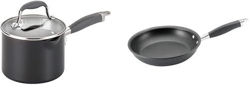 Anolon Advanced Sartén antiadherente anodizada dura con colación y tapa, 2 cuartos de galón, sartén antiadherente avanzada y grafitosartén anodizada