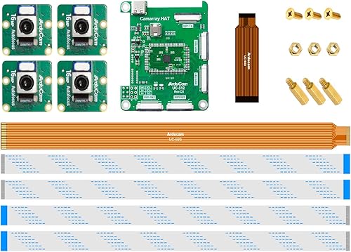 Arducam Kit de cámara cuádruple de enfoque automático de 16 MP para Raspberry Pi, cámara Pi sincronizada con enfoque automático IMX519 de 16 MP,