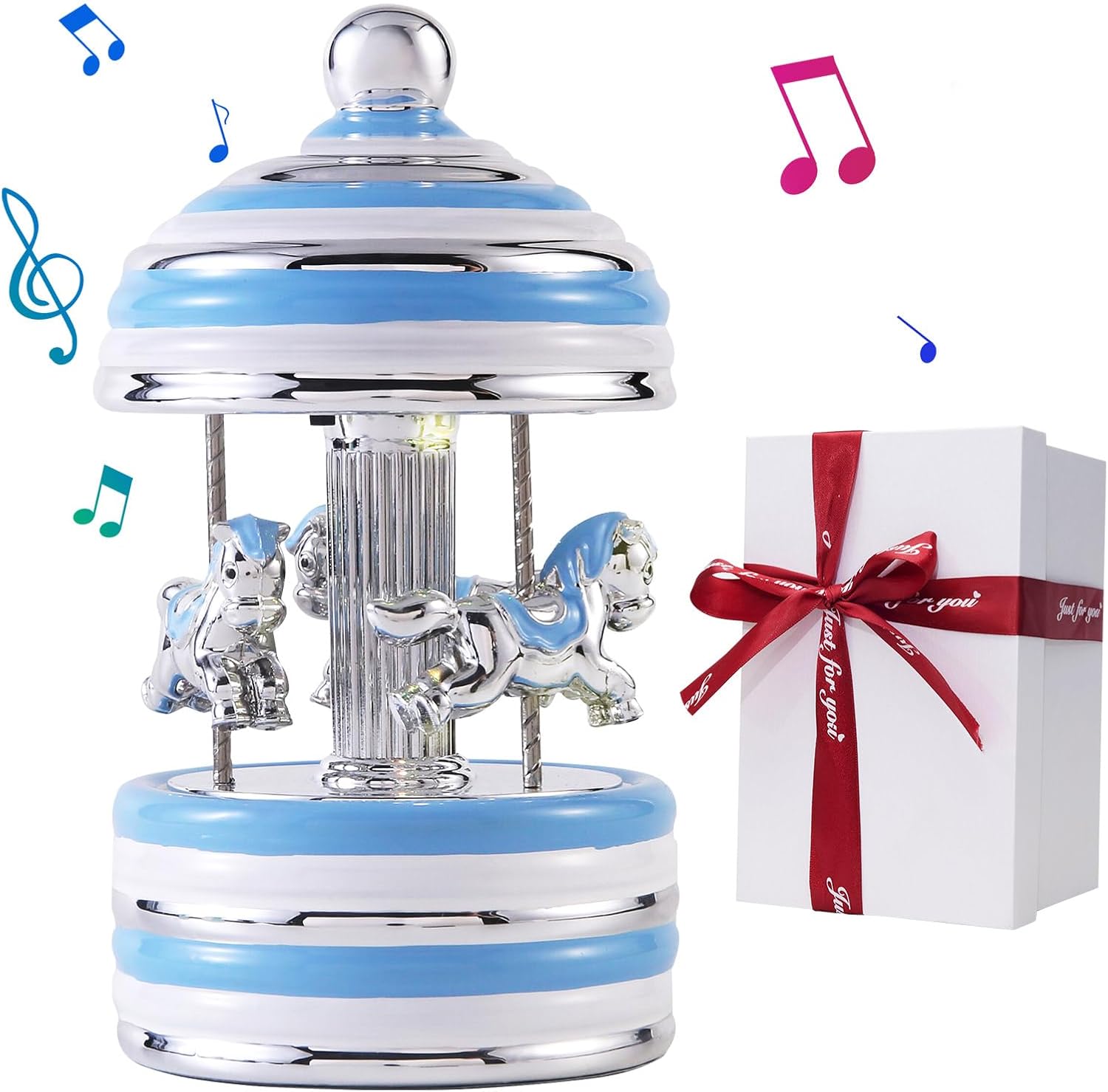 Caja de música de carrusel envuelta para regalo, carrusel musical de cerámica con luces que cambian de color, cajas de música para niñas, niños,