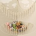 Hamaca Esquinera para Animales de Peluche, Red Grande de Juguetes de Peluche Tejida a Mano con Anillos de Madera Almacenamiento Boho Lindo