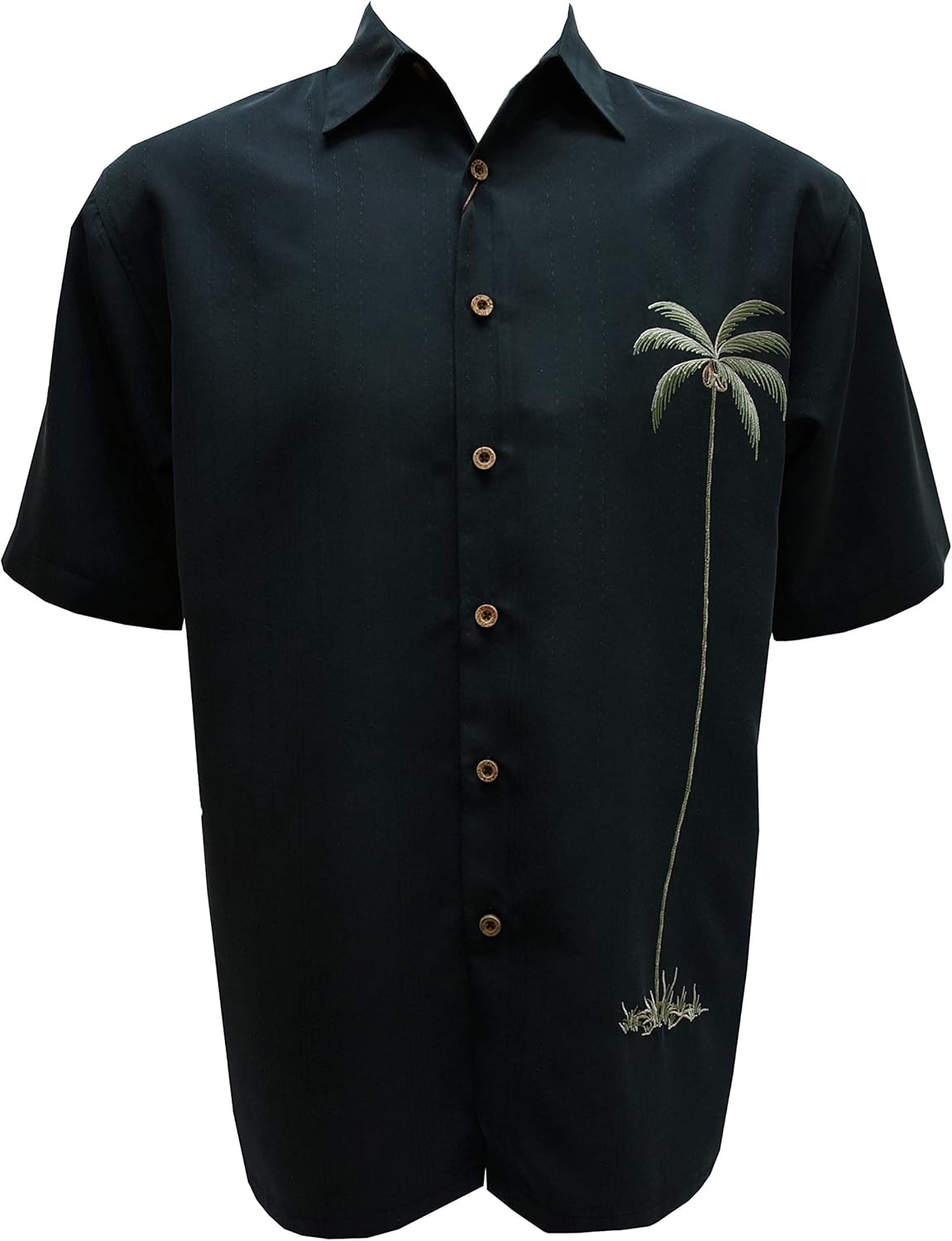 Bambú Cay Mens manga corta Hawaiian Casual bordado camisas tejidas