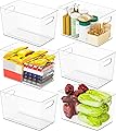 6 Pack Plastic Clear Bins for Organizing- With Handle -11″ Large Pantry Organizer Bins for Shelves Snack,Food or Cleaning Supplies,Fridge Organizers