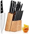 Cookit - Juego de cuchillos de cocina con bloque, juego de 15 cuchillos de cocina con soporte de bloque de pino, juego de bloques de cuchillos