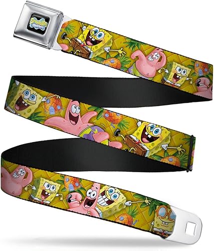 Buckle-Down Cinturón de seguridad Bob Esponja & Patrick Starfish Poses Pineapple Gold 1.0 pulgadas de ancho 20-36 pulgadas de largo