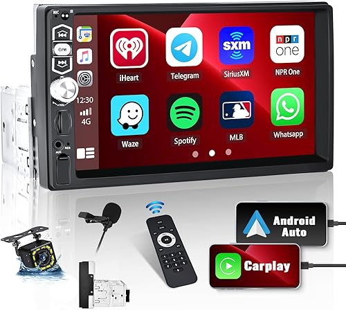 【Single Din Car Stereo with carplay】 Multimedia Car Stereo compatible with Apple CarPlay just connect with your smart phone that make it possible for you to access map navigation, phone contacts, email, notification, music and more. It features the latest voice control technology, allowing you to make phone calls, navigate, play music with the help of an intelligent voice assistant, while keeping your hands free for totally safe driving maneuvers! 【Phone Mirror Link Function & HD Touch Screen】This single DIN car stereo receiver compatible with almost all of android and IOS phones for mirror link function, use the USB connection to sync your smartphone to the big screen and enjoy the full features such as maps, movies and more! Features with resolution 1024*600 7 inch HD touch screen, support 1080P video playback. 【Bluetooth/FM radio/SWC】Single din touchscreen car stereo with bluetooth 4.0, hands-free answering and making calls, playing music intelligently. Car audio receivers, supports FM radio, with 18 preset stations, you can listen to real-time traffic, news broadcasts, weather forecasts etc. Support Steering wheel control function, quickly switch functions which you want with your car's steering wheel, more convenient. 【Rear View Camera Input】Car radio with backup camera, 12 LED camera has a 170° wide-angle lens and IP68 waterproof, supports automatic display of image. when the vehicle shifts into reverse,the car radio screen will automatically display the reverse image and record the traffic, make your daily reversing safer and more convenient. 【Friendly Customer Service】Camecho have professional technical team and great customer service, we offer 30-day Money-Back, 12-month Replacement, life-time Technical Support. If you have any confusion of installation or using, Please kindly email to us.We will handle with your problem as soon as possible within 24 hours.