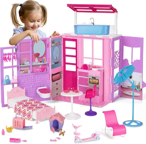 Diseño que ahorra espacio: esta casa de muñecas se pliega en un tamaño pequeño, facilitando el almacenamiento y ahorrando espacio en casa (las muñecas no están incluidas) Accesorios ricos: Nuestra casa de muñecas incluye una mesa, una silla, vajilla, una cama, una bañera, un parasol, un columpio diseñado para muñecas de 11.5 pulgadas, una casa para gatos, una casa para perros y un pequeño scooter adecuado para muñecas de 5.5 pulgadas. Con estos diversos accesorios, los niños pueden crear escenarios de juego aún más vívidos Pretend Playtime: Inspira el juego de rol imaginativo de los niños con esta casa de muñecas. Los niños pueden acostar a las muñecas, bañarlas, cocinar, cenar y relajarse con las mascotas en diferentes habitaciones Montaje simple de la casa de muñecas: fácil de montar la casa de muñecas en solo 3 minutos. No se necesitan largas horas, asegurando que los niños puedan disfrutar jugando con él rápidamente Regalo ideal para niñas de 3 a 8 años: la casa de muñecas es un maravilloso regalo de cumpleaños o Navidad para niñas de 3 a 8 años