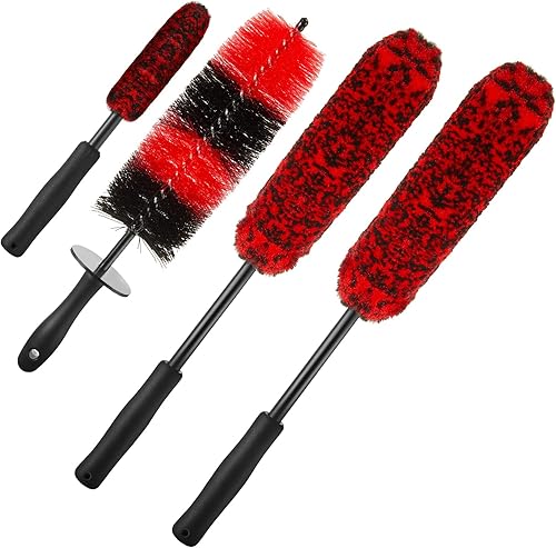 - Práctico juego de combinación: recibirás un total de 4 cepillos de limpieza de ruedas, incluyendo 3 cepillos de llanta para limpiar ruedas en 3 tamaños diferentes, 1 pieza de cepillo de rueda de camión de cerdas largas y suaves, suficiente para satisfacer las demandas de limpieza de tu automóvil 3 tamaños para elegir: el cepillo para detalles de motocicleta está disponible en 3 tamaños, la longitud es de aproximadamente 8 pulgadas, 12 pulgadas y 18 pulgadas respectivamente, el cepillo pequeño es adecuado para limpiar espacios estrechos, el cepillo de tamaño mediano es adecuado para limpiar radios, llantas y bordes, y el cepillo de gran tamaño se aplica para limpiar las superficies de neumáticos y ruedas Mango largo del cepillo de rueda: el cepillo largo para rueda de automóvil mide aproximadamente 18 pulgadas de largo, que puede penetrar en el interior de la rueda y los radios sin rayar la llanta, conveniente para limpiar los frenos de la rueda Diseño flexible: el cepillo de rueda suave se puede doblar hasta 360 grados, por lo que puedes limpiar las ruedas y los neumáticos rápida y fácilmente, para lograr un efecto de limpieza completo y eficiente, ahorrando tiempo y energía Amplia gama de aplicaciones: el cepillo de barril de rueda es práctico para el uso diario, muy adecuado para limpiar el interior y exterior del automóvil, ampliamente aplicado a automóviles, camiones, motocicletas, bicicletas, salones, barcos, ruedas, neumáticos, llantas, radios, rejillas, góndolas, tubos de escape, parachoques, rejillas de ventilación, guardabarros internos, frenos de rueda, tren de aterrizaje y mucho más