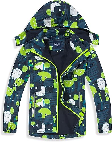 MGEOY Chaqueta de lluvia para niños y niñas, ligera, impermeable, con capucha, forro polar, impermeable cortavientos para niños