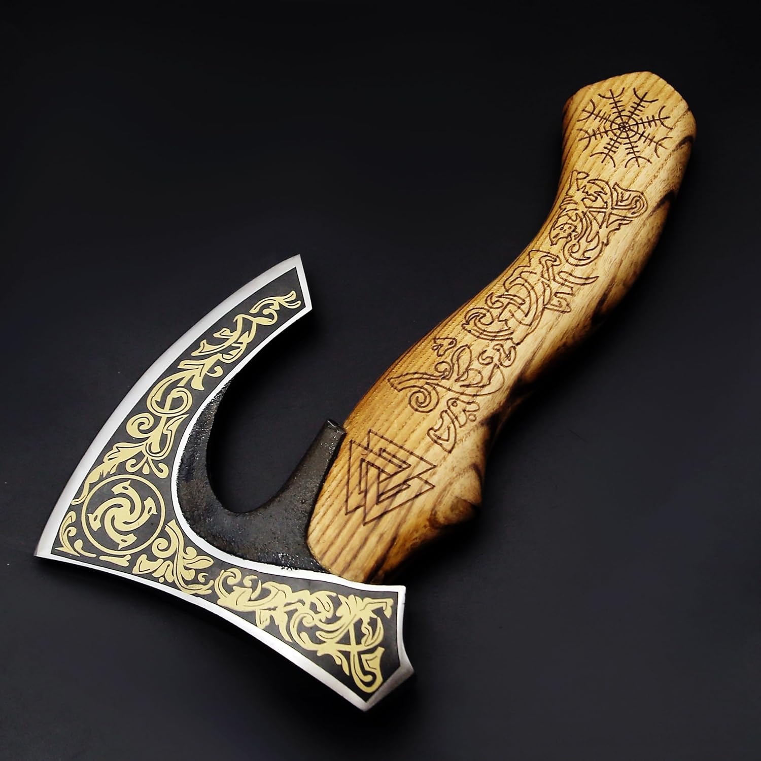 Hacha vikinga de SHINY CRAFTS, hacha barbuda tomahawk, regalos de cumpleaños - Hacha vikinga con cabeza de acero al carbono y mango de madera de