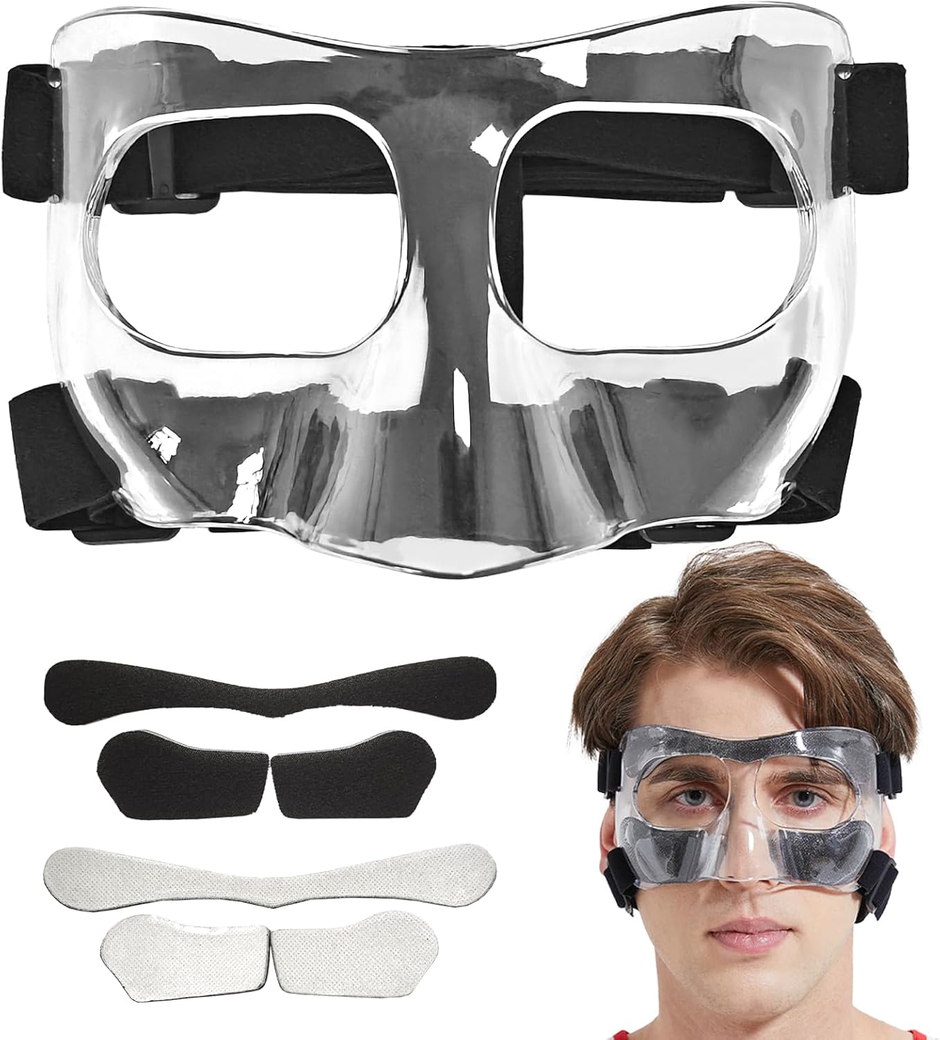 Protector de nariz para nariz rota, ajustable, cubrebocas con relleno, adecuado para adultos y adolescentes, baloncesto, fútbol y otros deportes
