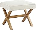 Amazon Basics Reposapiés otomano pequeño, taburete de poliéster cuadrado moderno de mediados de siglo, lino, blanco marfil, 18 pulgadas de