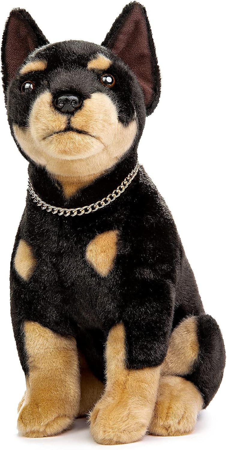 Juguete realista de peluche de perro Doberman – Simulación de 12 pulgadas de pie Doberman noble mascota perro de peluche modelo de cachorro,