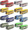 Juego de 16 piezas de vehículos de autobús urbano con tracción trasera, mini autos para niños pequeños, vehículos de carreras impulsados por