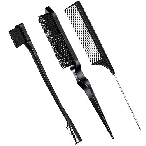 Geiserailie Juego de 3 cepillos para peinar el cabello liso Cepillo de cerdas Cepillo de control de bordes Cepillo de cardado para mujeres con Negro