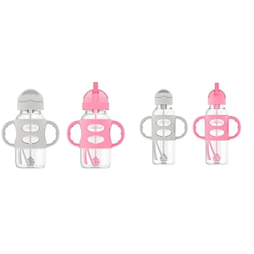 Dr. Brown's Milestones Wide-Neck Sippy Straw Bottle with 100% Silicone Handles and Weighted Straw, 9 oz/270 mL, Gray & Pink, 6m+Dr. Brown's Milestones Sippy Straw Bottle is the easy way to help baby develop new drinking skills! Baby can continue to use the bottle they love while transitioning from bottle to big kid drinking. The soft silicone weighted straw moves to follow liquid inside the bottle, so baby can tilt and sip while transitioning from tipping the bottle upside-down to sipping upright. Soft yet sturdy silicone handles make gripping easy and help teach baby new motor skills. A spill-proof lid is travel-friendly and slides closed to keep the straw clean when not in use. Both the sippy straw lid and silicone handles fit Dr. Brown’s Options+ Wide-Neck 9 oz/270 mL baby bottles and sippy spout bottles. Straw cleaning brush included. Dishwasher (top rack) and sterilizer safe. BPA-free. 6m+.Dr. Brown's Milestones Narrow Sippy Straw Bottle, Spill-Proof with 100% Silicone Handles and Weighted Straw, 8 oz/250 mL, Gray & Pink, 6m+Dr. Brown's Milestones Sippy Straw Bottle is the easy way to help baby develop new drinking skills! Baby can continue to use the bottle they love while transitioning from bottle to big kid drinking. The soft silicone weighted straw moves to follow liquid inside the bottle, so baby can tilt and sip while transitioning from tipping the bottle upside-down to sipping upright. Soft yet sturdy silicone handles make gripping easy and help teach baby new motor skills. The spill-proof lid is travel-friendly and slides closed to keep the straw clean when not in use. Both the sippy straw lid and silicone handles fit all Dr. Brown’s Options+ 8 oz/250 mL baby bottles and sippy spout bottles. Straw cleaning brush included. Dishwasher (top rack) and sterilizer safe. BPA-free. 6m+.