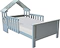 Little Partners Lil' House - Cama infantil de madera maciza con forma de hogar con rieles y dos protectores de seguridad, se adapta a colchones de