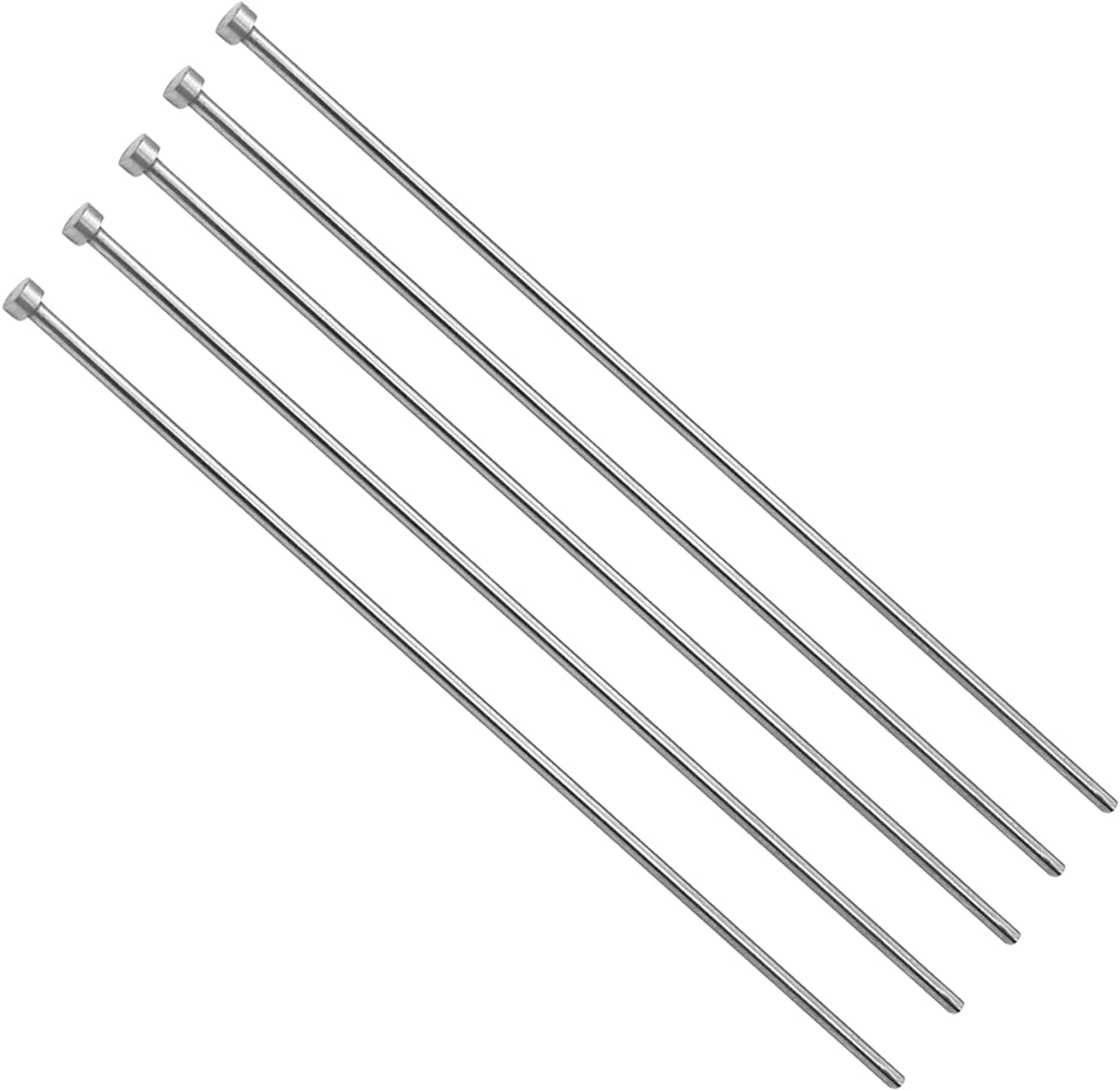 Pin de eyector recto, punta redonda, 8.0 in, longitud total de acero, 1/8 pulgadas de diámetro del vástago 65 Mn color gris plateado, 5 unidades
