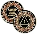 Moneda de sobriedad de 1 año | Flames AA Chip Medallion Recovery Gift Aniversario Token con Alcohólicos Anónimos Afirmación de promesa de décimo paso