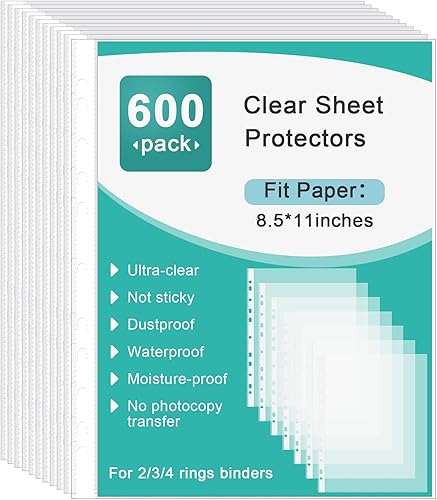 SUNEE Protectores de Hojas 600 Paquetes para Carpeta de 3 Anillos, Fundas de Plástico Transparente de 8.5 x 11 pulgadas para Papel, Documentos,