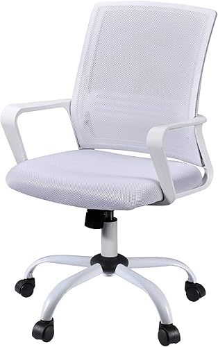 Nuestra silla de oficina puede satisfacer todas tus necesidades diarias. Diseño ergonómico con respaldo de malla altamente ventilada, cojín de esponja suave y moderada que se adapta a tu posición sentada durante mucho tiempo y no te sentirás cansado. La parte inferior de la silla de escritorio está equipada con una perilla de ajuste de tensión para proporcionar un cierto grado de inclinación para que puedas relajarte después del trabajo. La palanca de ajuste puede ayudarte a ajustar la altura del asiento para que la silla pueda alcanzar tu altura ideal. Característica Nuevo estilo de silla de oficina, hermosa practicidad generosa y fuerte. El tamaño y el aspecto hacen que la silla de escritorio ahorre espacio ideal para cualquier lugar. La silla de escritorio para computadora con base resistente y soportes para brazos, y control de altura de bloqueo. La rueda giratoria de 360 grados y la silla pueden ser más flexibles en la estación de trabajo. Todos los accesorios pasan la prueba BIFMA.