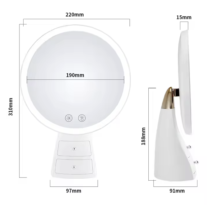 3 colores y modos regulables: el espejo de maquillaje iluminado tiene 3 modos de iluminación de color: luz fría/luz natural/luz cálida, puedes elegir la luz más adecuada de acuerdo con la escena, así como elegir el brillo de la luz con diferentes intensidades, para crear el maquillaje más perfecto.