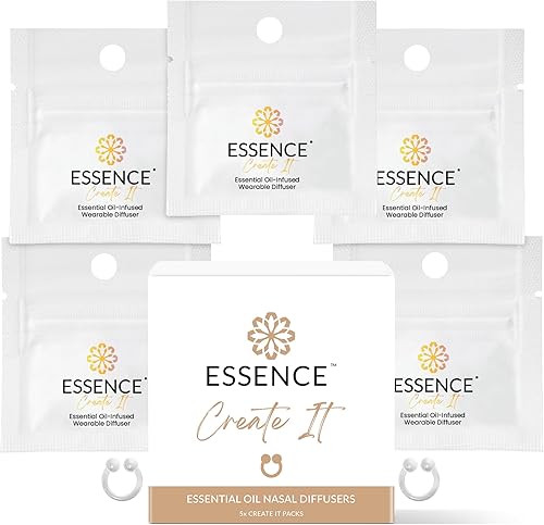 UPLIFT YOUR MOOD WITH 5 SELF-CARE ESSENTIAL OIL BLENDS – A curated collection of essential oils for energy, relaxation, and focus. Featuring Lavender, Stress Relief, Orange, and Breathe Easy, this pack keeps your wellness routine fresh and revitalizing every day. WEARABLE AROMATHERAPY, SCENT YOU CAN FEEL – Clip it on. Breathe it in. One deep inhale, and ESSENCE takes you somewhere—without anyone else noticing. INFUSED WITH 100% PURE ESSENTIAL OILS – Each ESSENCE nose diffuser ring is infused with high-quality essential oils using advanced scent-retention tech, giving you therapeutic fragrance all day. PERSONAL SCENT SHIELD, BREATHE ONLY WHAT YOU LOVE – Discreetly filter out overpowering smells and replace them with refreshing aromatherapy, perfect for nurses, travelers, and everyday moments. REFRESH, REUSE & KEEP YOUR ESSENCE ALIVE – Pair with our Refresh Kit to reactivate your scent and reduce waste. Choose single or get as gifts and experience the power of wearable wellness for longer.