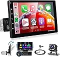 Rimoody Estéreo de automóvil de 10.1 pulgadas de un solo DIN, pantalla táctil desmontable con Apple CarPlay y Android Auto, cámara de respaldo