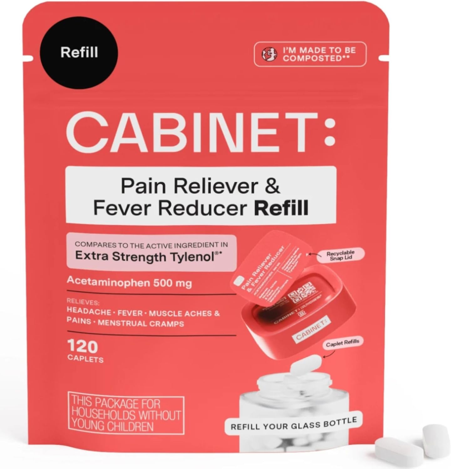 Cabinet: Acetaminofeno de 500 mg para aliviar el dolor de cabeza, dolores de muelas, dolor de garganta y reductor de fiebre, incluye 1 frasco de