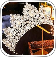 Corona Barroca y Tiara de Cristal Dorado con Perlas para Novia Boda Reina, Coronas Decorativas, Tiaras de Princesa con Diamantes de Imitación,