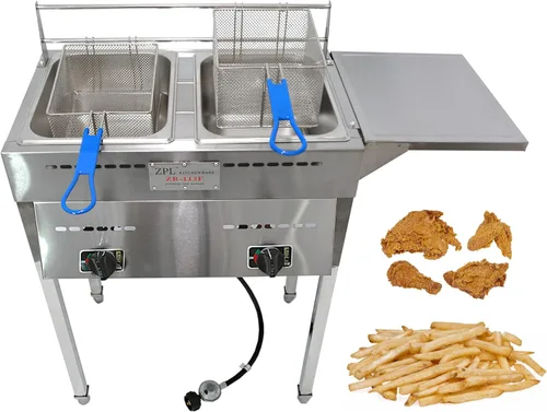 Tanques duales de 9 cuartos de galón: con dos tanques separados, puede freír diferentes alimentos al mismo tiempo sin transferencia de sabor. Perfecto para entornos de alta demanda como camiones de comida, eventos y grandes reuniones. Construcción de acero inoxidable: construido para un uso duradero, el robusto cuerpo de acero inoxidable garantiza durabilidad mientras que sigue siendo fácil de limpiar. Cestas y tapas extraíbles: incluye dos cestas extraíbles con asas de tacto frío y tapas seguras para una cocción más segura. Alimentado por propano para portabilidad: diseñada para uso en exteriores, esta freidora funciona con propano, lo que facilita su transporte y configuración donde lo necesite.