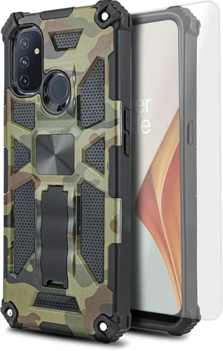 Funda diseñada para 1+ Nord N100, OnePlus N100 Funda magnética con soporte magnético con vidrio templado, funda protectora de doble capa a prueba