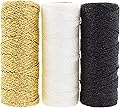 Mandala Crafts Cuerda de oro blanco y negro para envolver regalos, 165 yardas de 0.039 pulgadas, fina cuerda metálica para panaderos, manualidades,