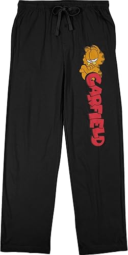 Ahora puedes estar tan relajado como tu gato atigrado naranja favorito. Los pantalones de pijama negros para hombre con logotipo de Garfield cuentan con un colorido gráfico de Garfield y el logotipo de la serie de dibujos animados en la pierna izquierda que ha sido impreso profesionalmente para garantizar un color y calidad de impresión duraderos. Este cómodo par de pantalones negros para hombre está hecho de una mezcla de alta calidad de materiales de algodón y poliéster, e incluye una cintura con cordón para un fácil ajuste para que puedas obtener el ajuste perfecto. Los pantalones de pijama negros para hombre con logotipo de Garfield se pueden lavar a máquina en frío con colores similares y secar en secadora a baja temperatura para un mejor y fácil cuidado. Este es un producto con licencia oficial y es un gran regalo para los fanáticos