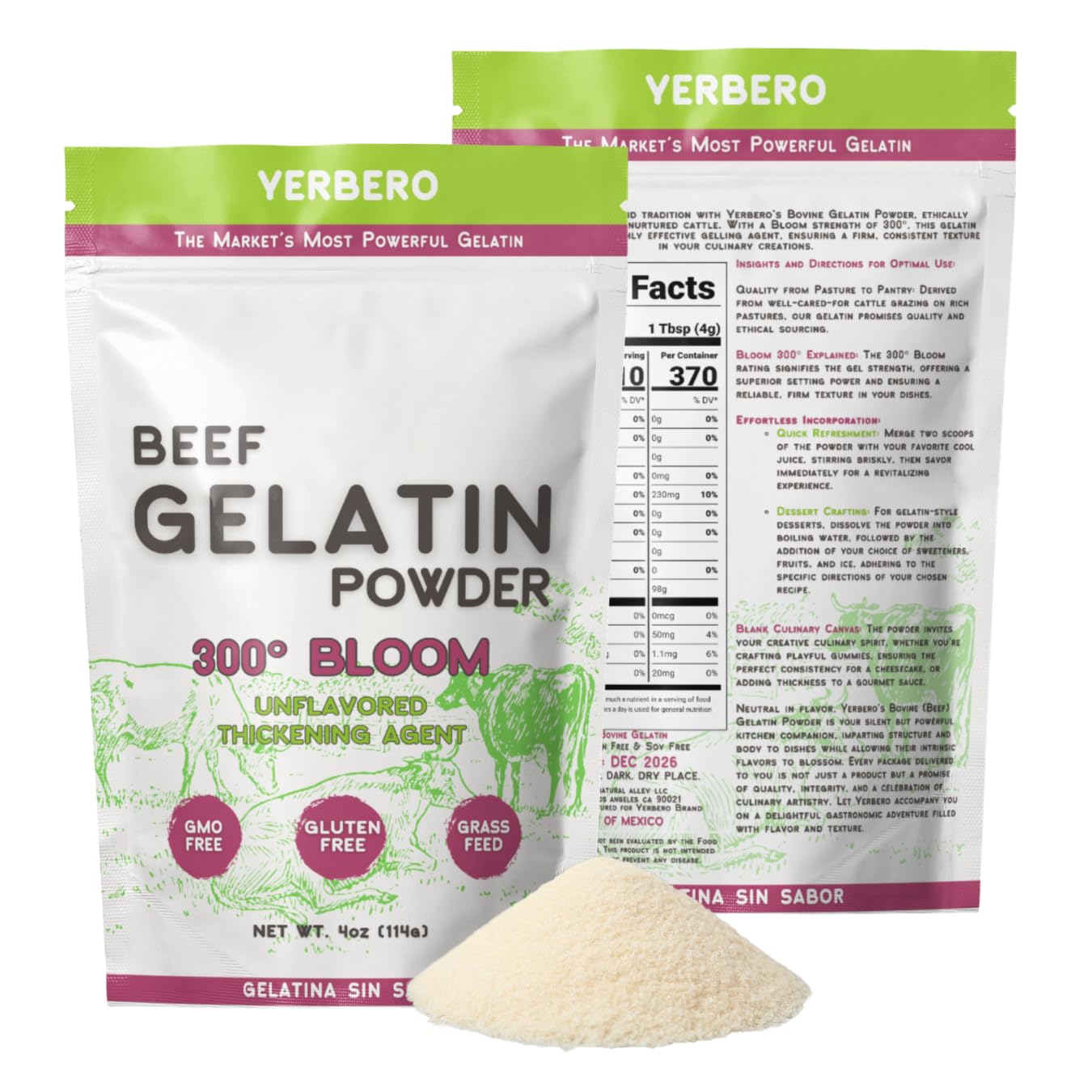 Yerbero - Polvo de gelatina de carne de res de 300° sin sabor prémium de 4 onzas (4.02 oz) | Agente espesante | Grenetina en Polvo Sin Sabor |