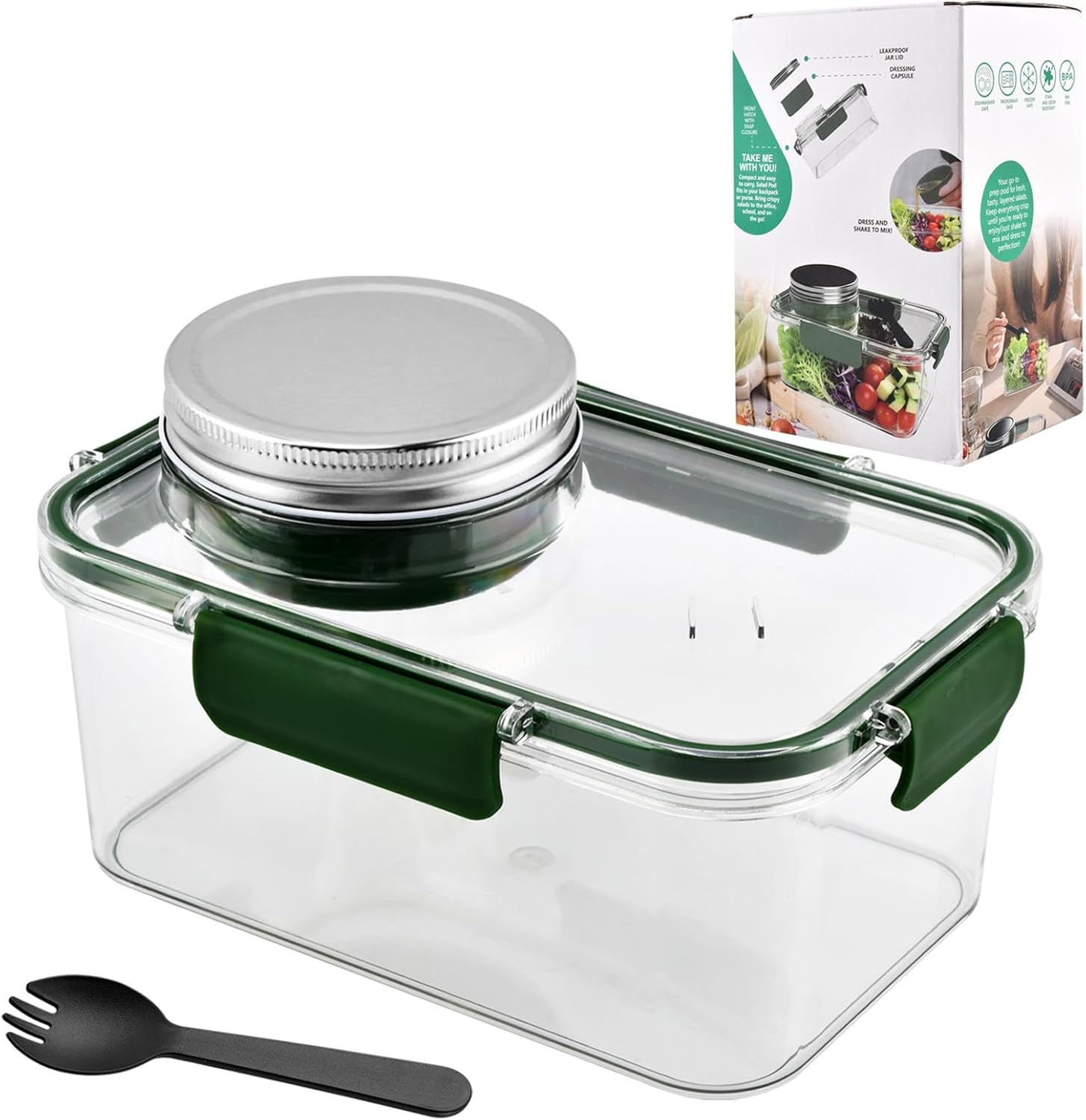 Tarro de ensalada portátil con taza de salsa y tenedor, recipiente grande para ensalada, tarro de Sala-d Pod Mason a prueba de fugas, adecuado para