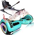 SIMATE Aeropatineta con combinación de accesorios de asiento, 6.5 pulgadas, autoequilibrante, con altavoces Bluetooth y luces LED para niños,