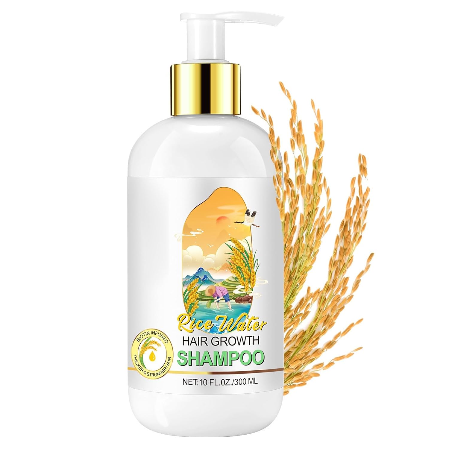 Champú de agua de arroz para el crecimiento del cabello con biotina y aceite de romero para adelgazar el cabello y la pérdida del cabello, champú