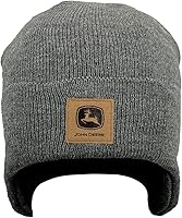 John Deere Gorro con logotipo de parche de cuero con cubierta para las orejas, color carbón, Carbón vegetal