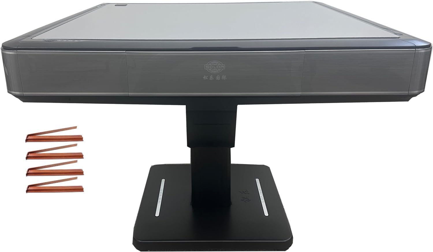 Mesa Mahjong automática plegable ultrafina gris de 1.575 pulgadas (1.575 in), azulejos numerados estilo plegable + 4 estantes + cubierta dura de mesa