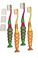Dr. Brown's Cepillos de dientes de jirafa y elefante rosa para bebés con pasta de dientes para bebés, fresa, 1.4 onzas